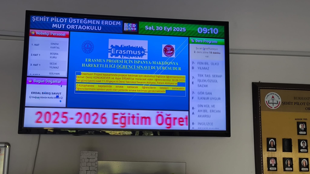 Okulumuzun yürüttüğü Erasmus+ projesi kapsamında 30 Eylül 2025 tarihinde öğrenci seçimi için yazılı sınav yapılmıştır. Yapılan değerlendirme sonucunda aşağıda isimleri yer alan öğrenciler, konuşma sınavına girmeye hak kazanmıştır.